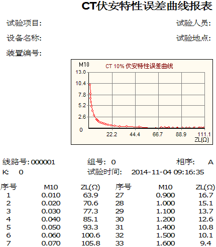 打印誤差曲線:選擇一條CT伏安特性數據,在箭頭下選擇打印誤差曲線生成打印預覽,如圖5.14所示:
